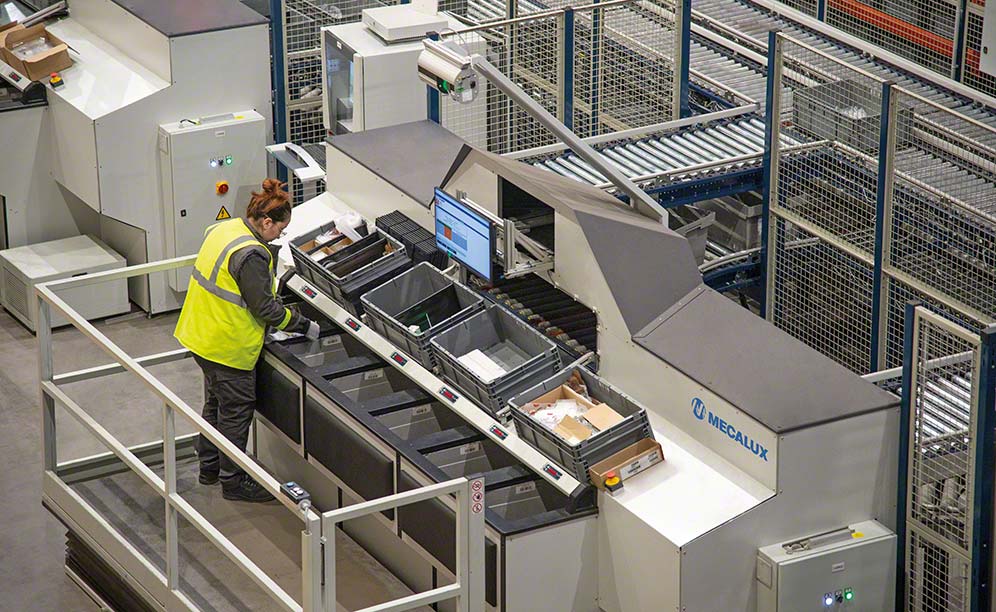 Las dos estaciones de picking de alto rendimiento, instaladas en uno de los laterales del depósito automático, son puestos de trabajo ergonómicos, especialmente diseñados para potenciar la preparación de múltiples pedidos a la vez. Cada estación consta de dos niveles: por el superior llegan las cajas con la mercadería para conformar los pedidos. El sistema trabaja siguiendo el principio pick-to-tote, es decir, el operario toma los productos de esas cajas y los deposita en un contenedor ─situado en el nivel inferior─ que corresponde a un pedido en concreto.